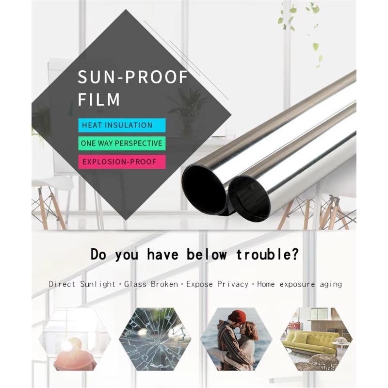 Film de sécurité moderne auto-adhésif en PET pour fenêtres de bâtiment, effet miroir argenté unidirectionnel, décoratif pour la protection de la vie privée, anti-explosion
