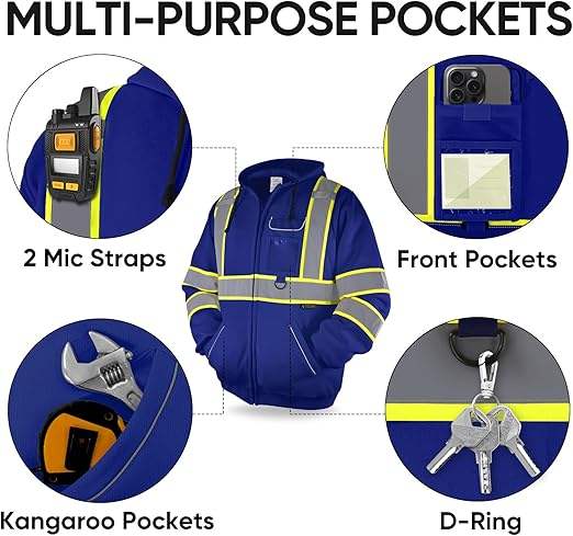Veste à capuche de sécurité, sweat à capuche en molleton de sécurité réfléchissant haute visibilité, équipement EPI pour temps froid conforme à la norme ANSI