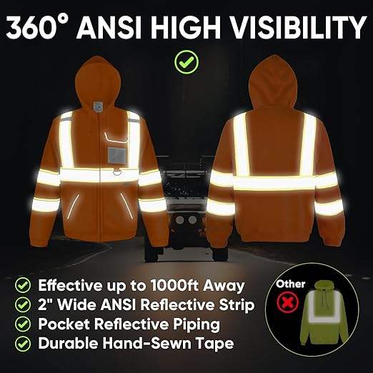 Veste à capuche de sécurité, sweat à capuche en molleton de sécurité réfléchissant haute visibilité, équipement EPI pour temps froid conforme à la norme ANSI