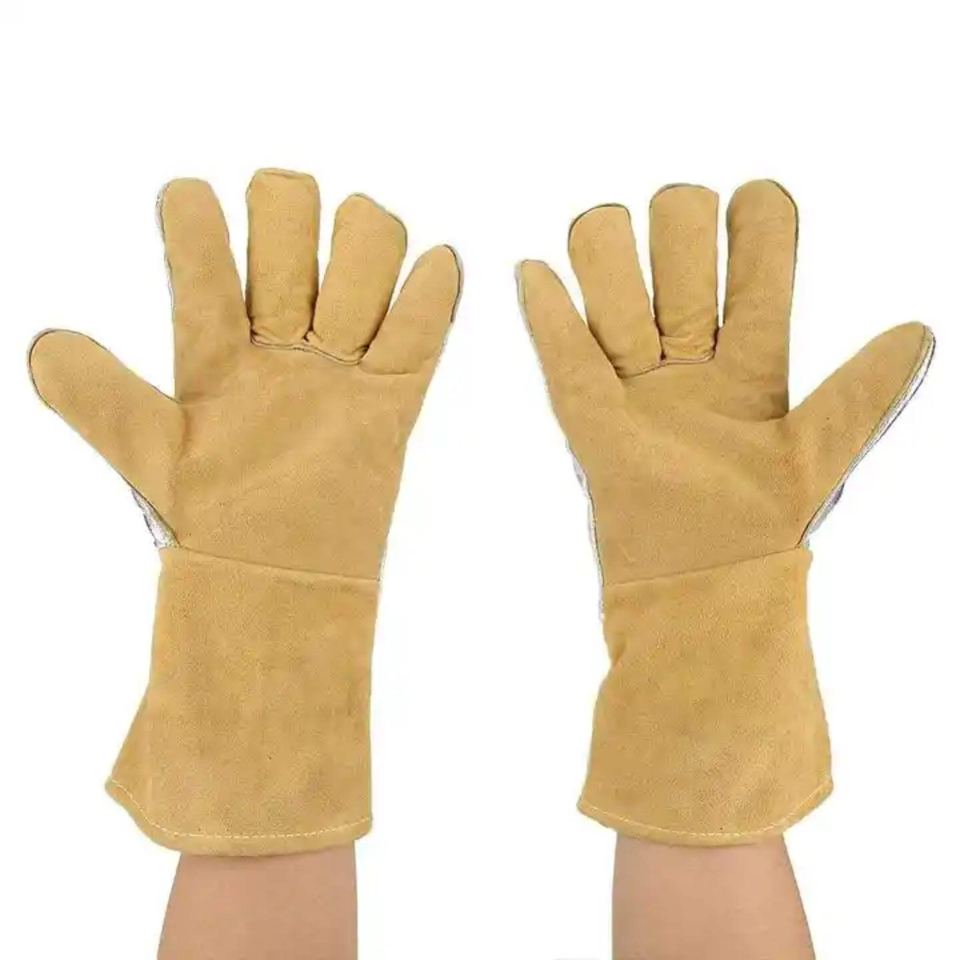 Gants de soudage en cuir fendu aluminisé pour la protection et la sécurité, résistants au feu et à la chaleur, pour travaux lourds