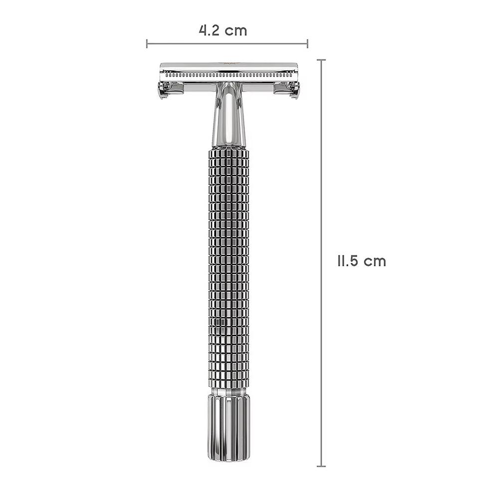 Rasoir de sécurité à double tranchant, manche élégant, outil de rasage professionnel, kit de toilettage de précision en acier inoxydable pour hommes HERMANN