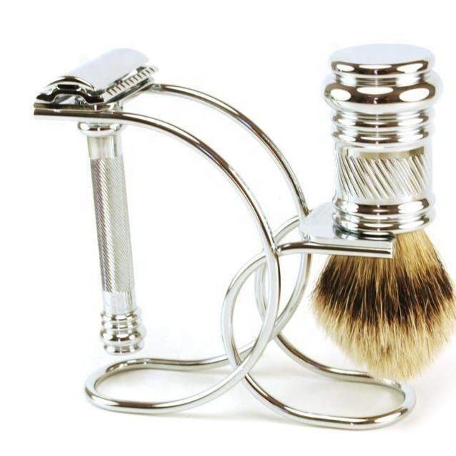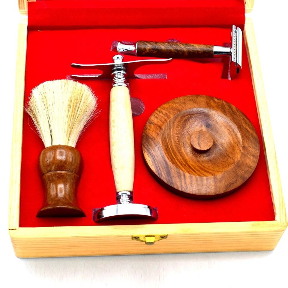 Rasoir de sécurité à Double bord, ensemble cadeau avec brosse en bois et lames, Instruments de sol, cadeau