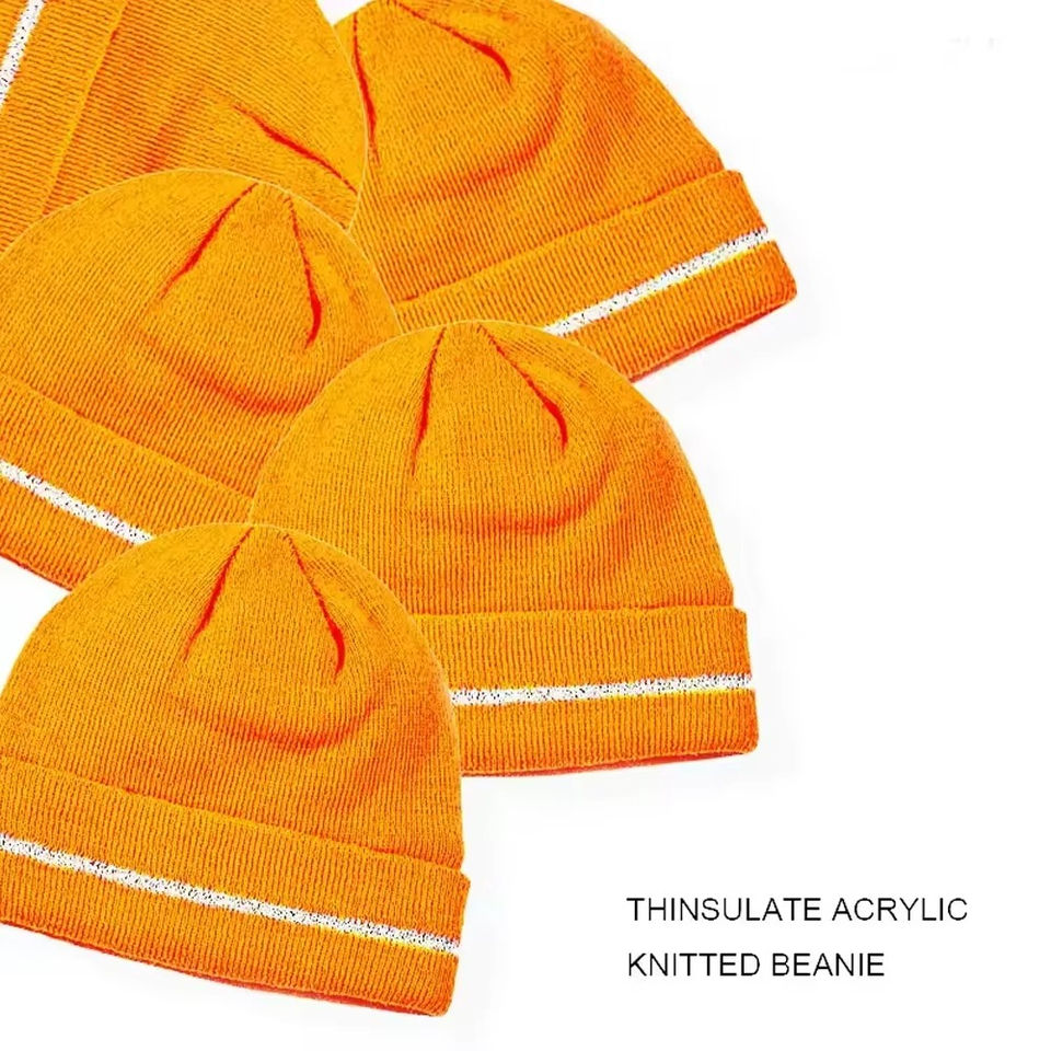 Bonnet de travail de sécurité en tricot avec revers, nouveau design, couleur orange fluorescente, acrylique réfléchissant, unisexe, hiver, plage, respirant