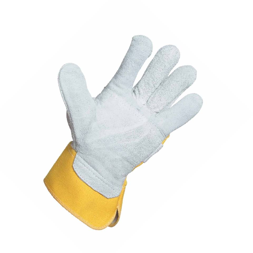 Safety Working Gloves Made of Cow Split Leather 3" Rubberized Safety Cuff and Cotton Stripes Cloth Back Size 10 Work Gloves