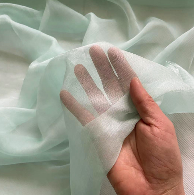 Tissu en mousseline de soie froissé 100% pure soie couleur vert sauge pour écharpe ou hijabs pour femme