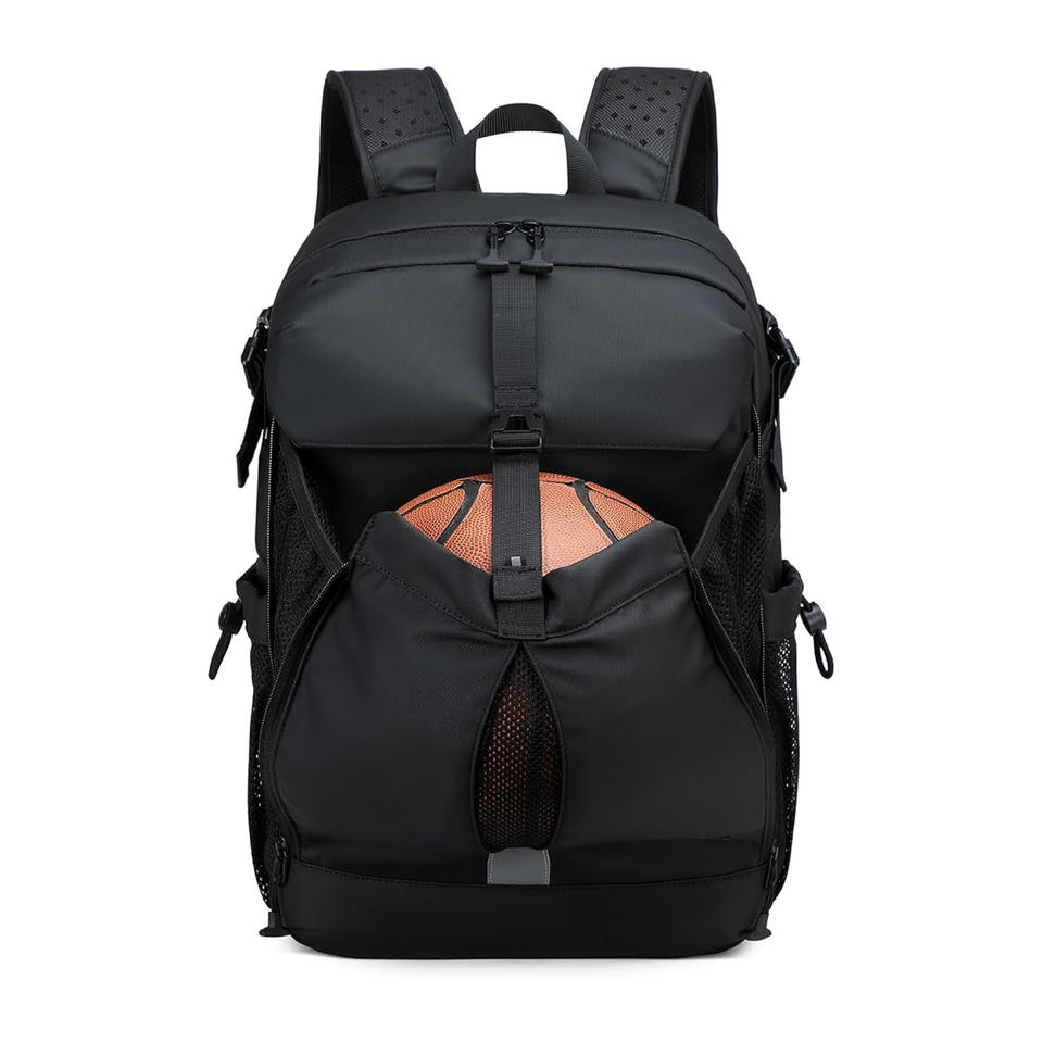 Sac à dos de sport vert sauge avec compartiment pour ballon de basket, poche à chaussures, fermeture éclair, doublure en nylon - Grand format, imperméable, pour la gym et l'école