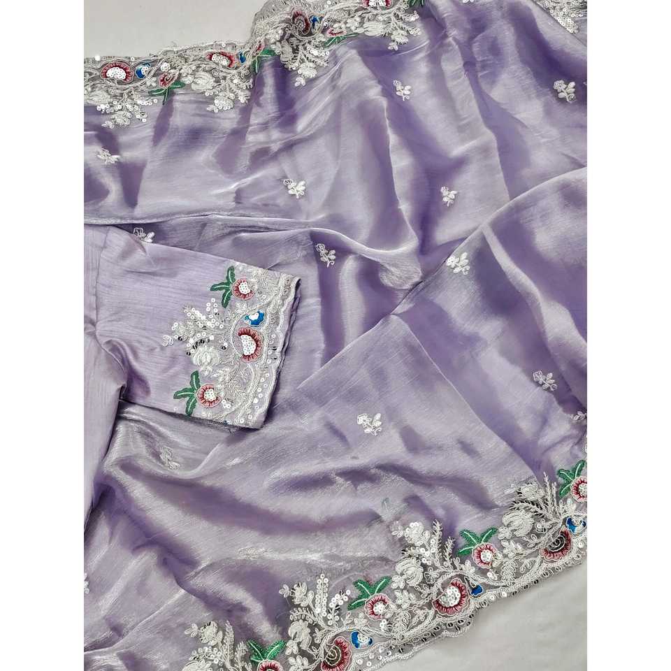 Sari de soirée violet Sai Creation avec broderie, travail de codage et de paillettes, taille M