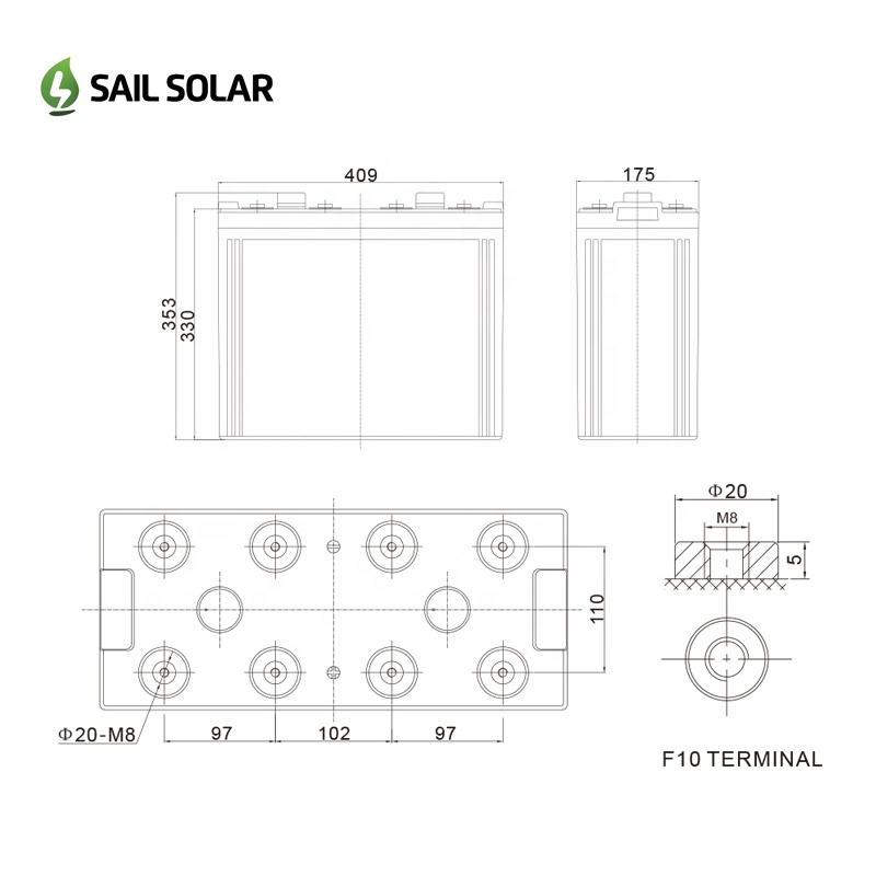 Batterie solaire au plomb-acide 2V 800Ah, prix d'usine Sail Solar, batterie rechargeable pour usage commercial
