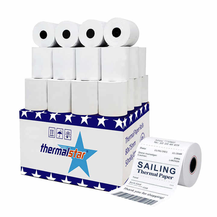 Rouleaux de papier thermique blanc pour terminal de caisse portable, sans Bisphénol A, monocouche, pour tickets de caisse