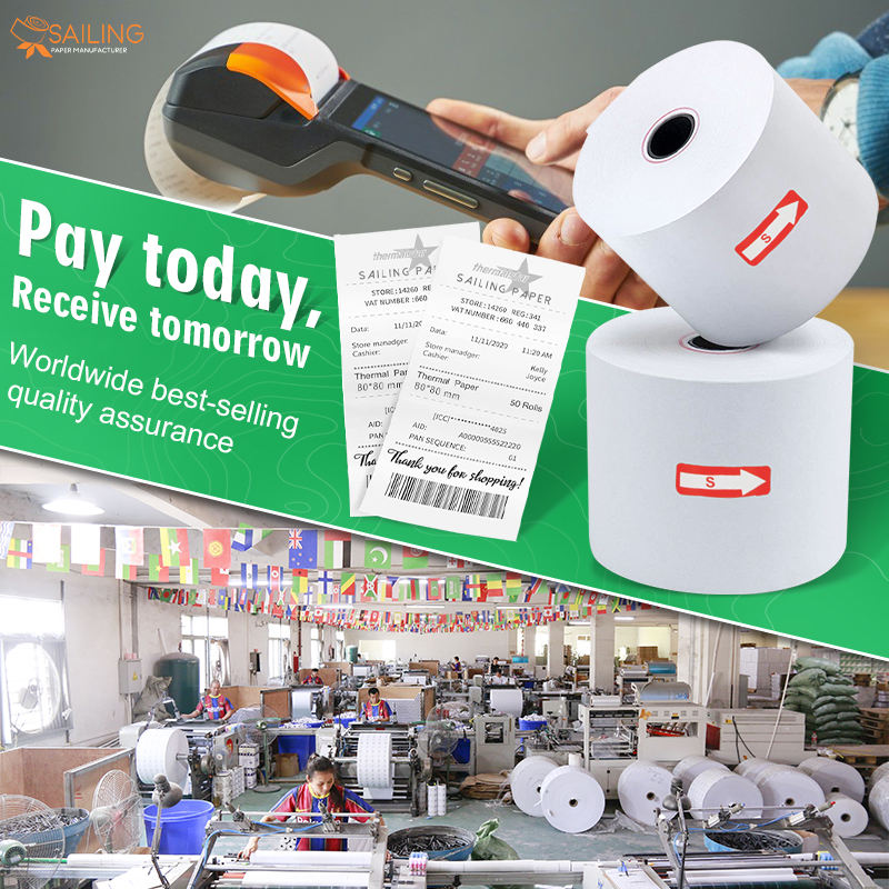 Papier thermique sans phénol 57x30 pour facture, rouleau 48g 79mm*80m, Sailing Pos 3 1 8