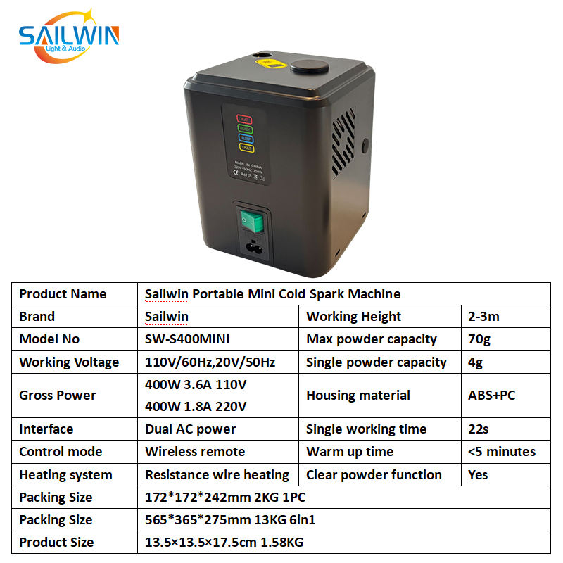 Sailwin EU Stock 350W Sans Fil DMX 512 Feux d'Artifice à Étincelles Froides Avec Télécommande DJ Mariage Effets Spéciaux Sparkler Froid FX