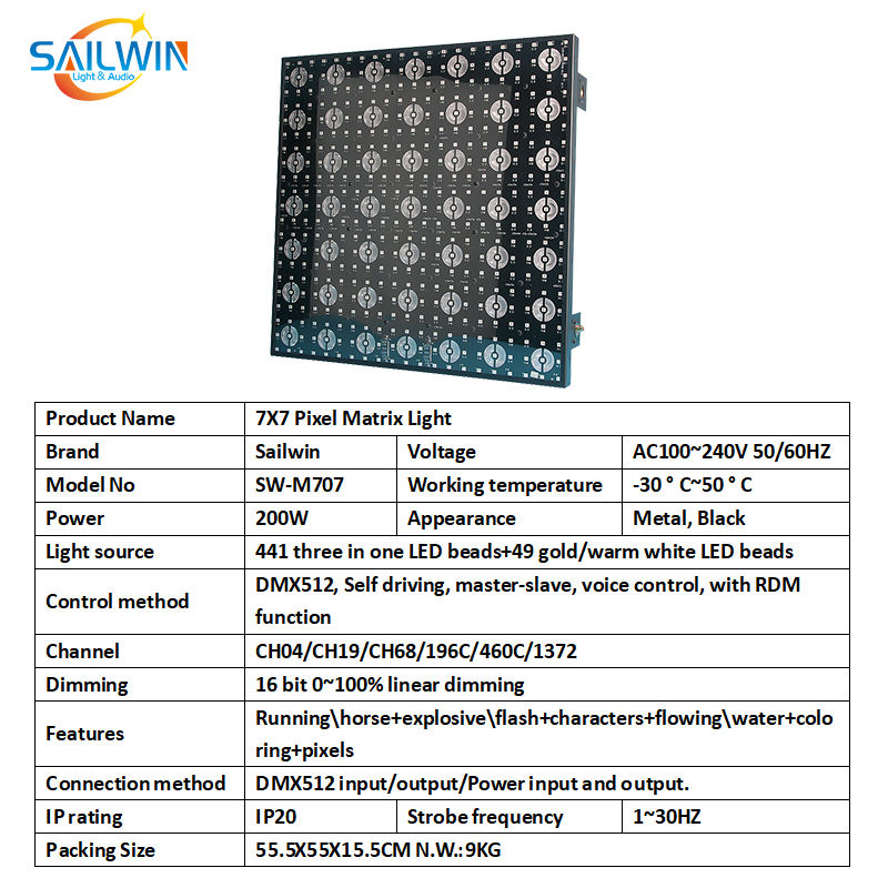 Équipement d'éclairage de scène Sailwin 7X7 Pixel RGBW LED Matrix Beam Light DMX512 Pixel LED Display pour Stage Party