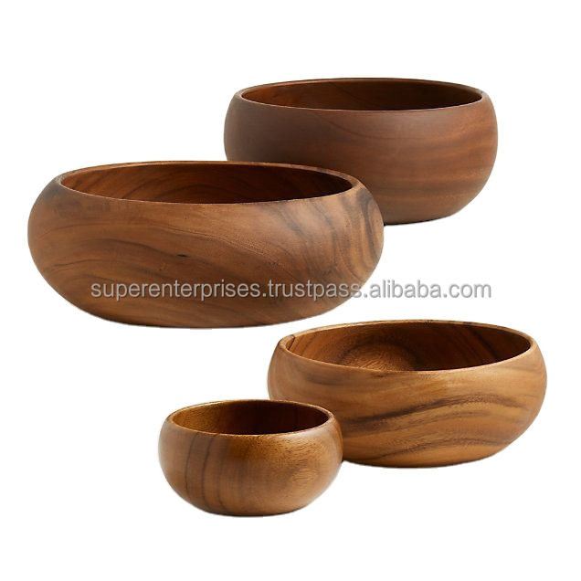 Bols à salade en bois d'acacia poli et disponible Bols de service en bois de qualité supérieure Décoration intérieure Articles de cuisine
