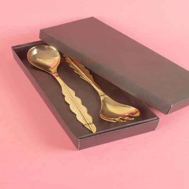 Serveur à salade avec poignée en feuille Serveur à salade Ensemble de 2 PVD or avec boîte noire