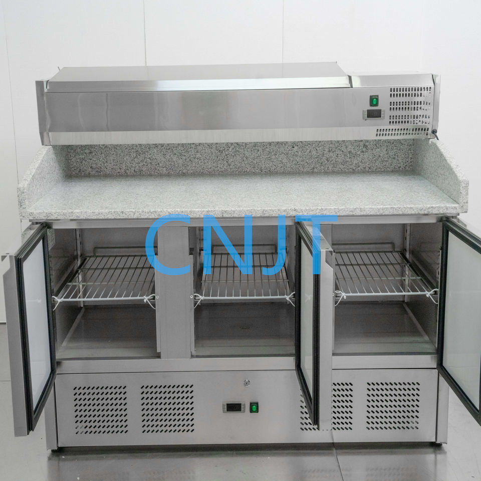 Saladette Réfrigérateur avec 3 portes solides en acier et dessus en pierre