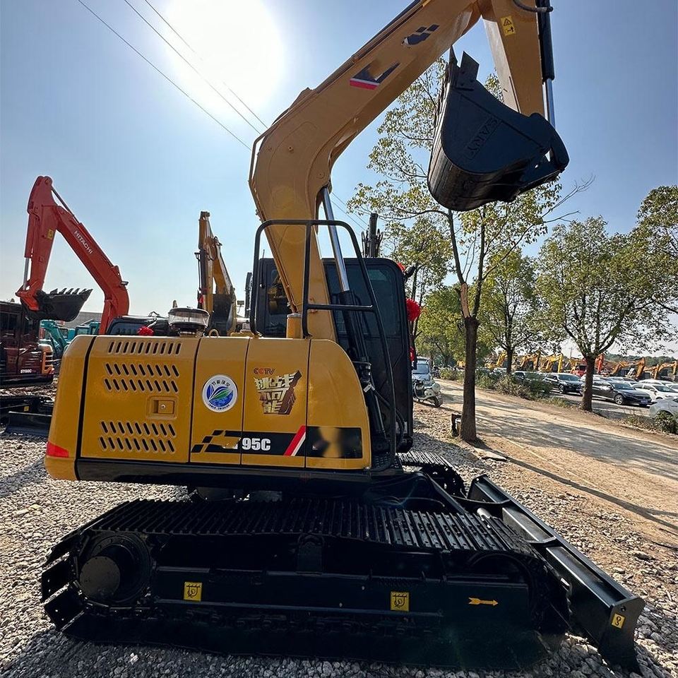Promotion : Excavatrice sur chenilles Sany SY95, 9 tonnes, état quasi neuf (99%), avec moteur Yanmar, boîte de vitesses, vérins hydrauliques Hengli et pompe hydraulique Kawasaki.