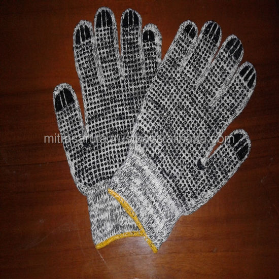 Gant tricoté avec des points en pvc, vente en gros Gant antidérapant en silicone, ne glisse pas, avec pointillé dans la paume