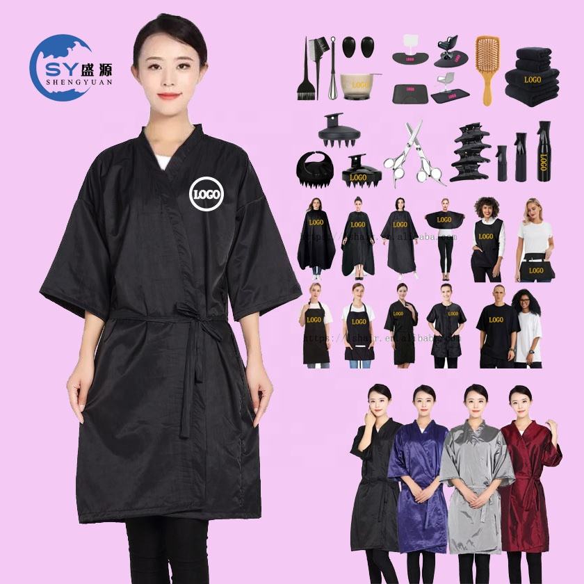 Robe de salon pour client, cape personnalisée avec logo, robe de coiffure anti-taches, blouse pour coiffeur, coupe de cheveux, coloration de cheveux, maquillage pour femmes