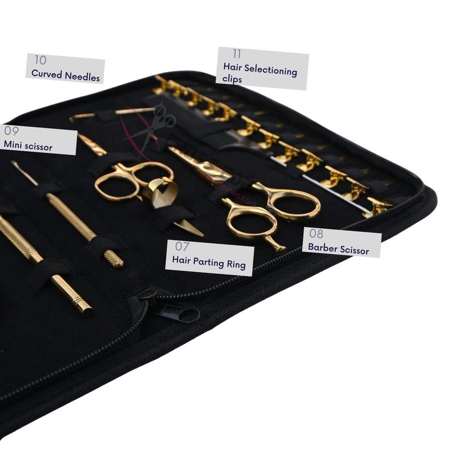 Quantité minimale de commande:1 étui Kit d'outils d'extension de cheveux dorés avec acier inoxydable