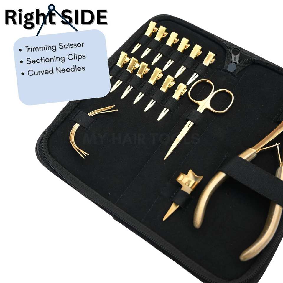 Mots-clés:Kit d'outils pour extensions de cheveux dorées avec pince à sertir robuste à pointe plate
