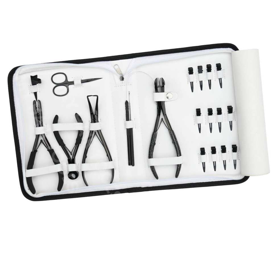 Salon Hair Extension Kit with Microbead Two Hole Crimping Pliers