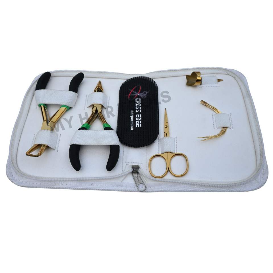 Kit d'outils pour extensions capillaires, étui blanc avec pince à micro-anneaux