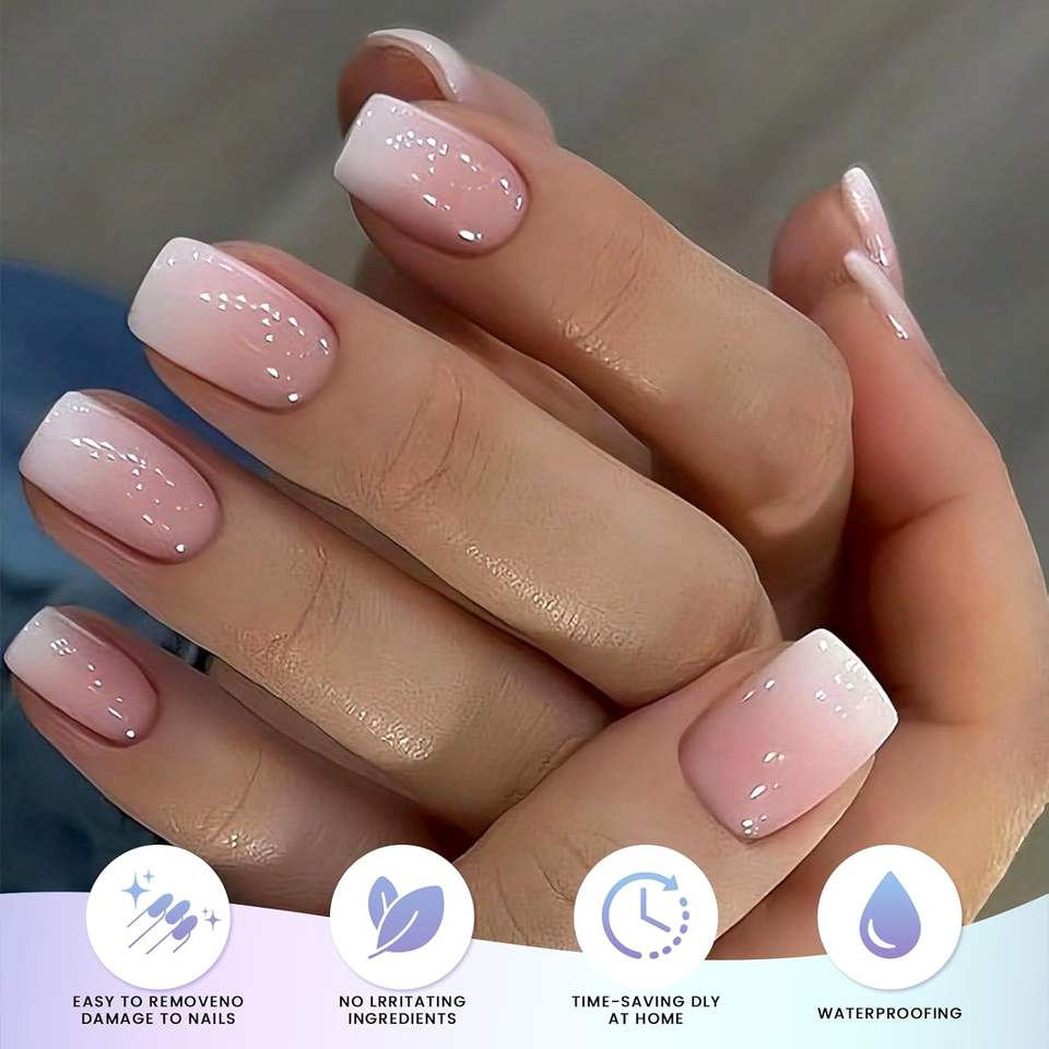 Strips Ongles en Gel Semi-Durci Rose Ombré Qualité Salon Facile Application et Retrait Lampes UV Stickers Wraps Gel Ongles