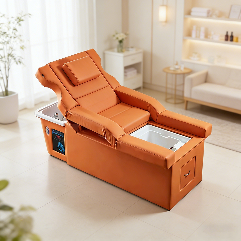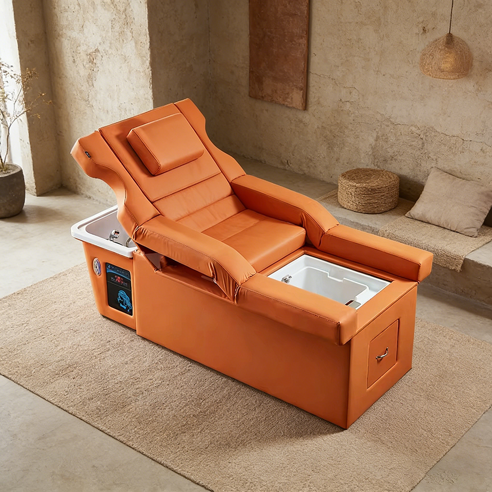 Fauteuil de lavage électrique pour salon avec bac en céramique et repose-pieds, lit de massage multifonction pour spa