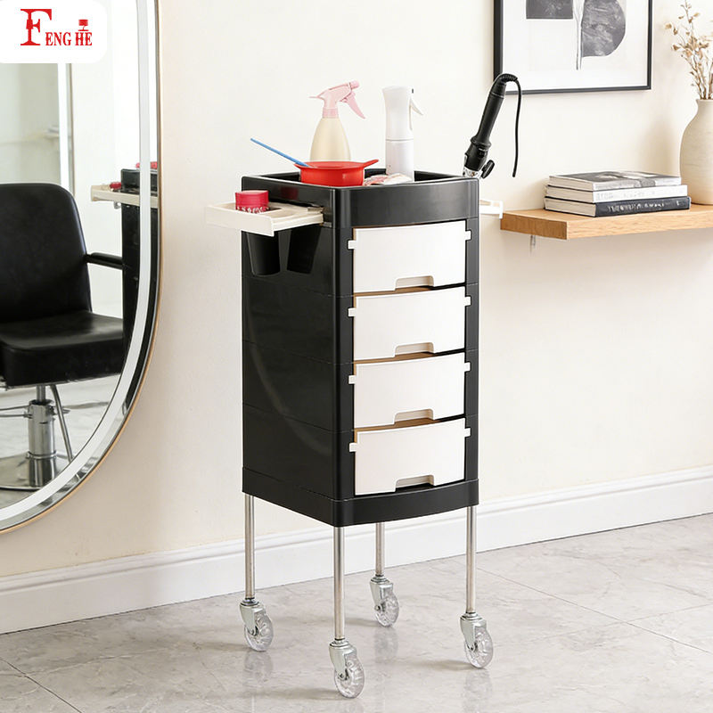 Chariot de salon T0165 avec logo/couleur personnalisés, chariot à 4 tiroirs, roues silencieuses de 3 pouces, livraison directe pour studio de beauté