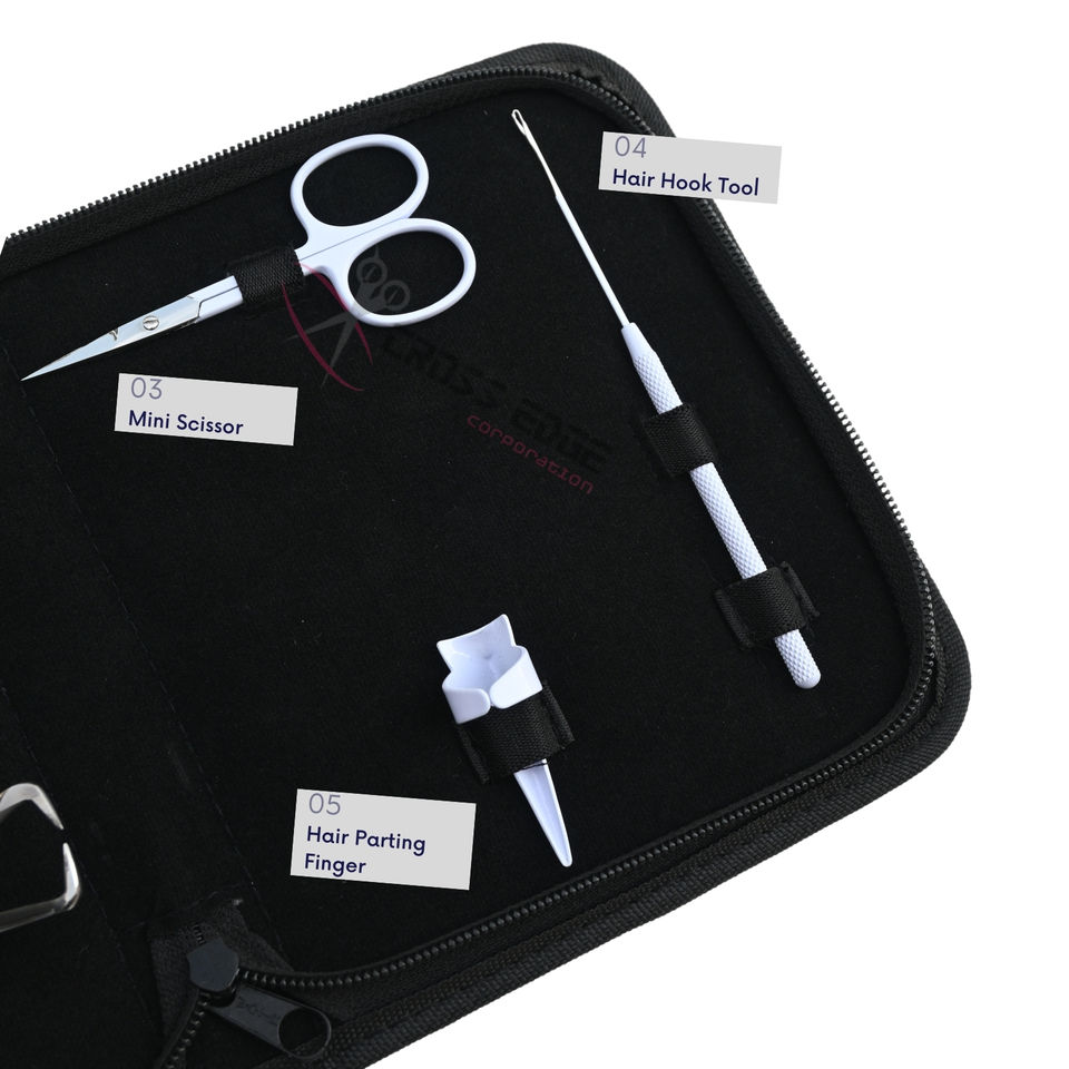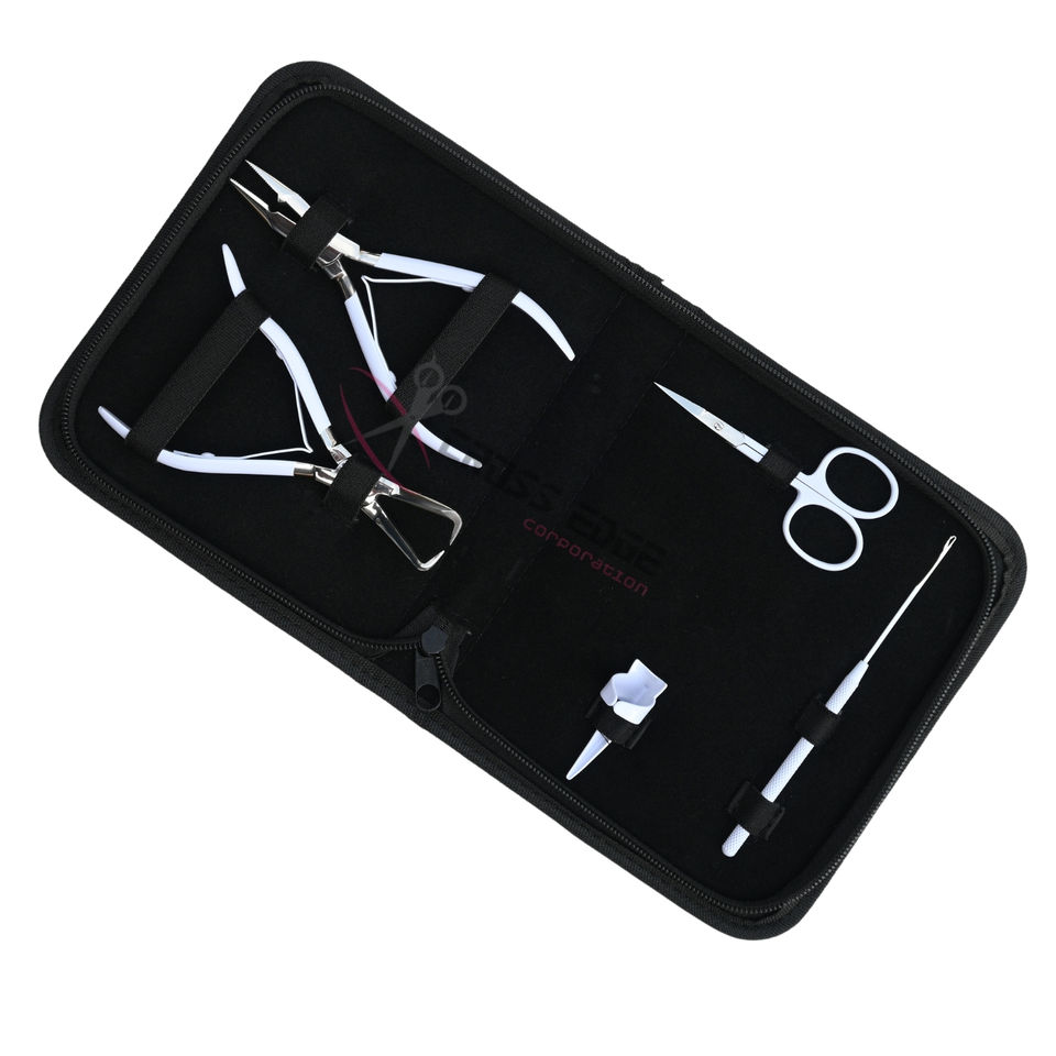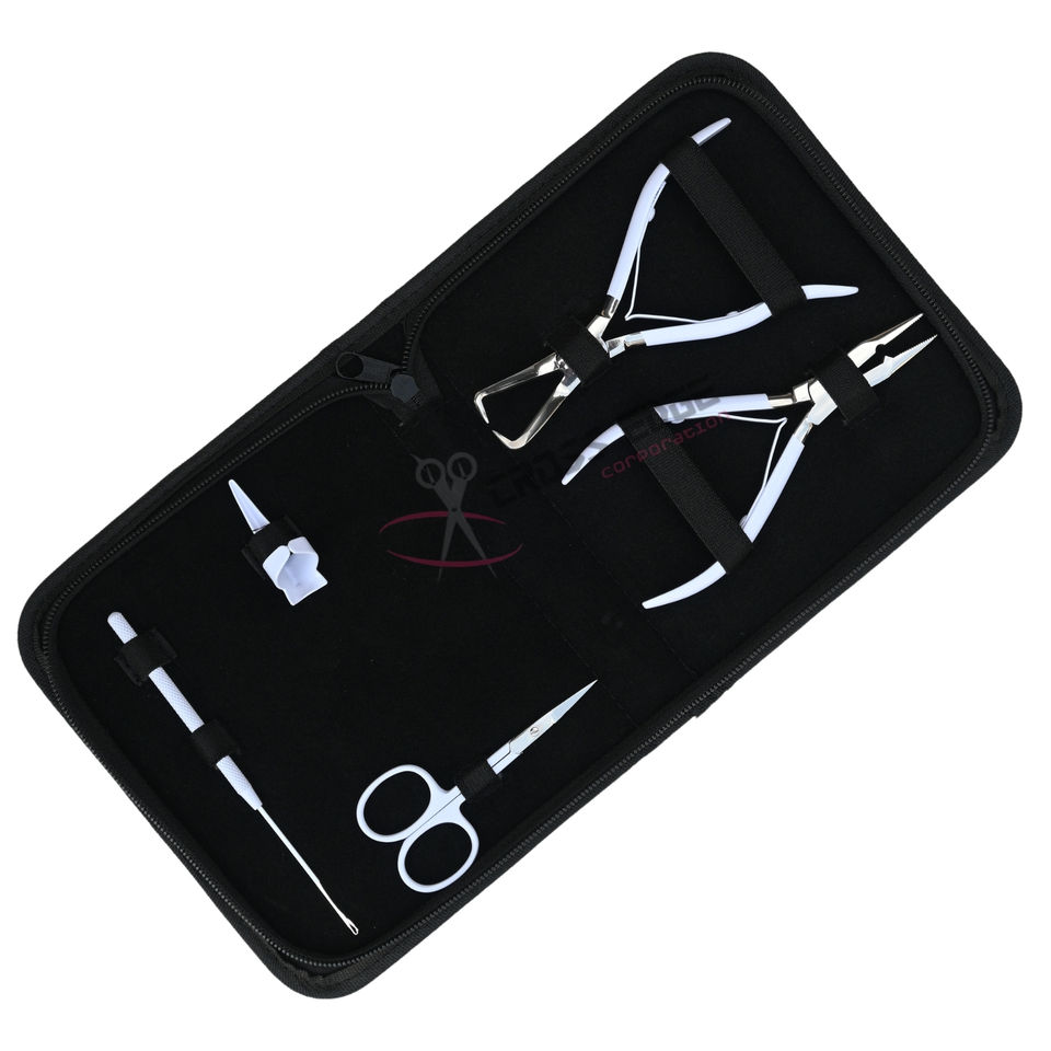 Kit d'outils pour extensions capillaires Salon White : Pinces à micro-anneaux, Pinces à sertir et à retirer, Ciseaux de coupe, Doigtier de séparation