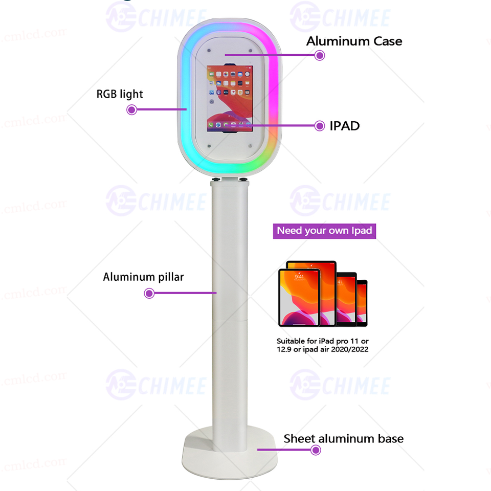 Machine photobooth iPad Salsa ovale noir et blanc, kiosque photobooth avec lumières LED RGB, cabine selfie avec valise de transport pour fête et mariage