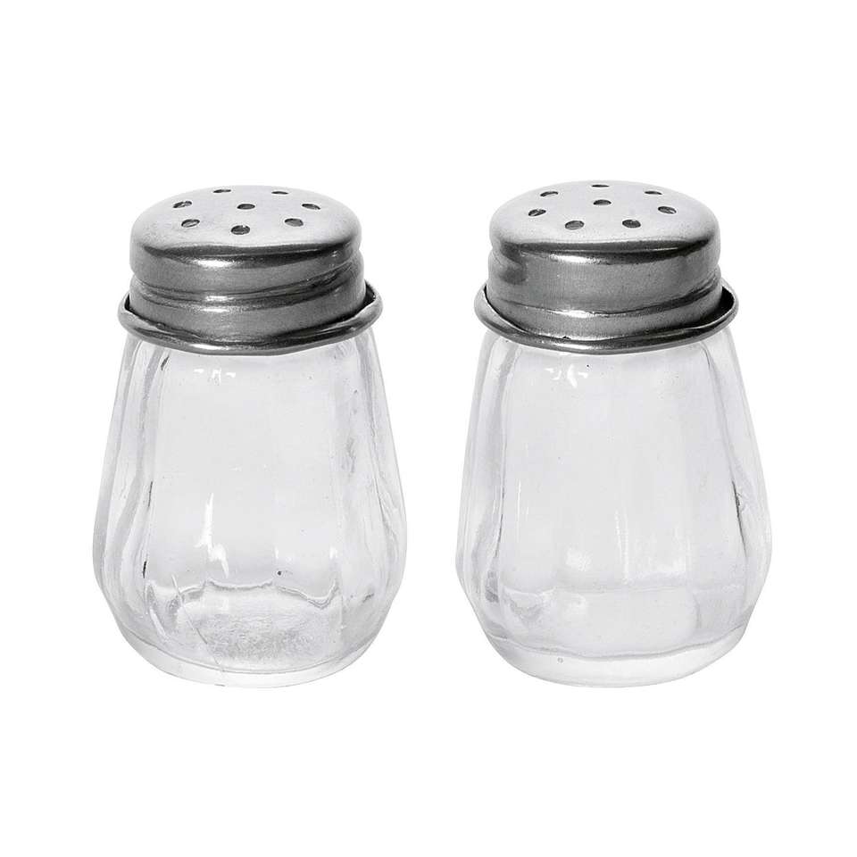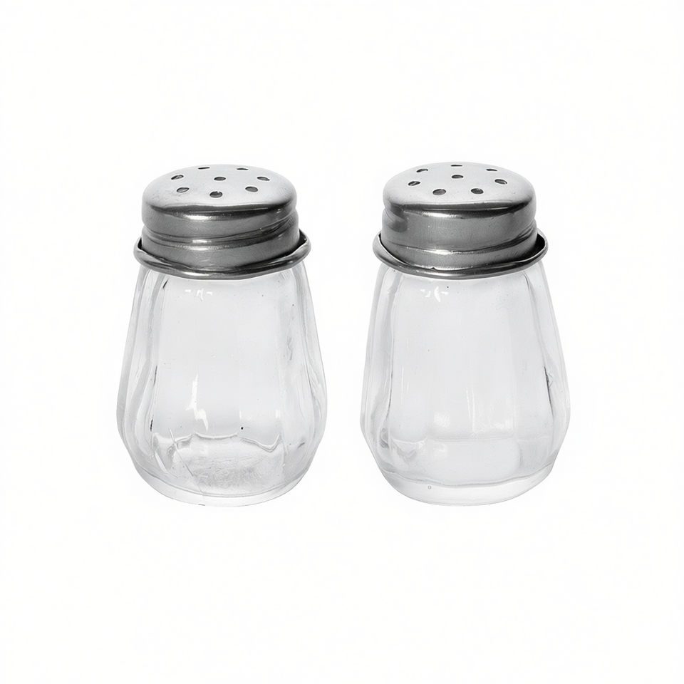 Ensemble salière et poivrière 2 pièces en verre avec couvercle en métal pour utilisation sur table