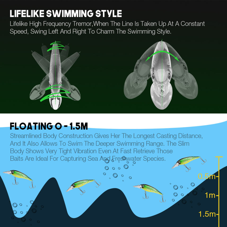 Type de leurre de pêche:Leurres Crayon, Coulée d'eau douce, Catsing d'eau salée, Leurres de truite, Leurre de traîne d'eau douce, Leurres de bar, Leurres Perche, Leurre de traîne d'eau salée, Leurres de brochet, Leurres Crankbait, Leurres métalliques, Leurres Minnow