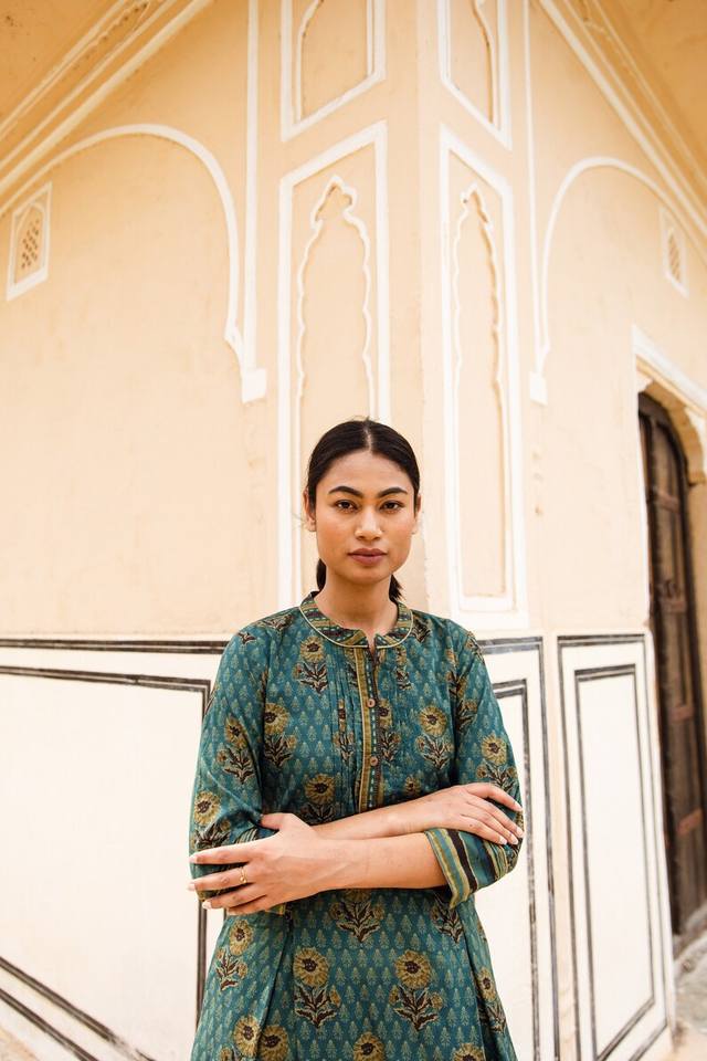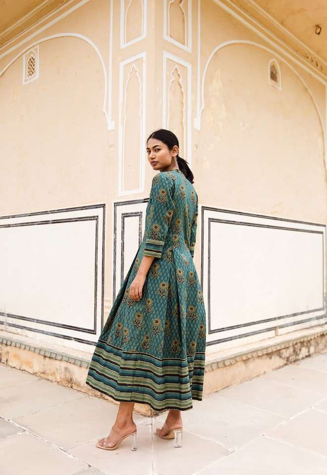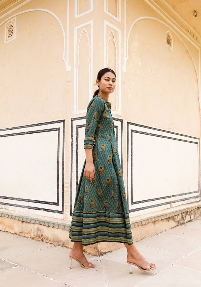 Samah Bohemian Cotton Dress Calf Length Handcrafted Holiday Wear