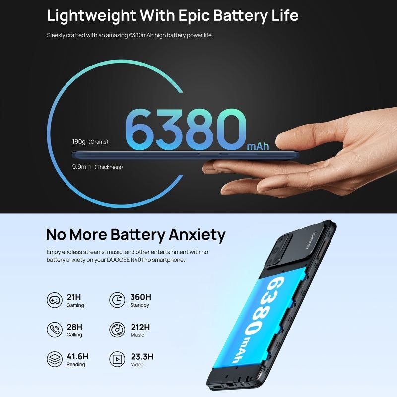 Téléphone portable DOOGEE N40 Pro Quad caméra arrière 6 go + 128 go, livraison le jour même