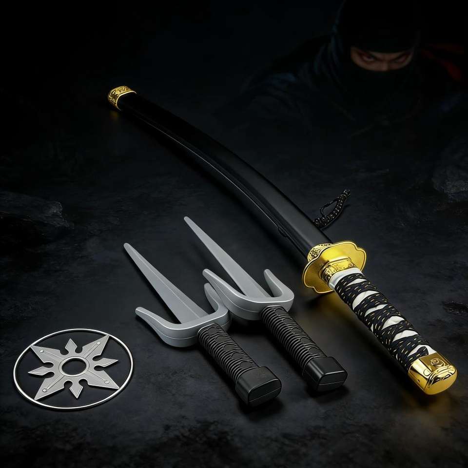 Épée de samouraï, accessoire de cosplay, armes japonaises, ensemble de sabres en plastique avec katana, kunai, shuriken et accessoires de ninja