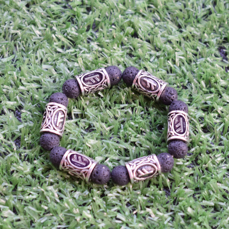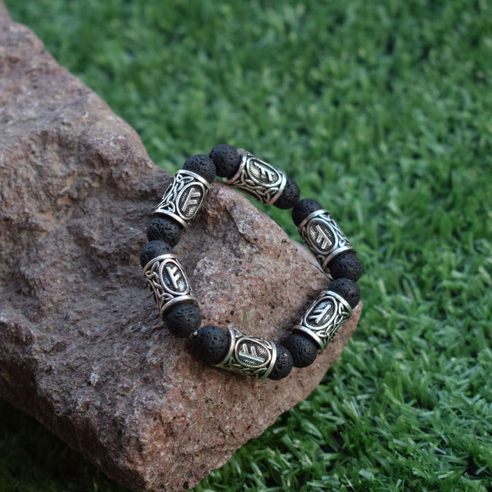 Bracelet pour femme en alliage de zinc avec perles de lave et runes vikings SanLan