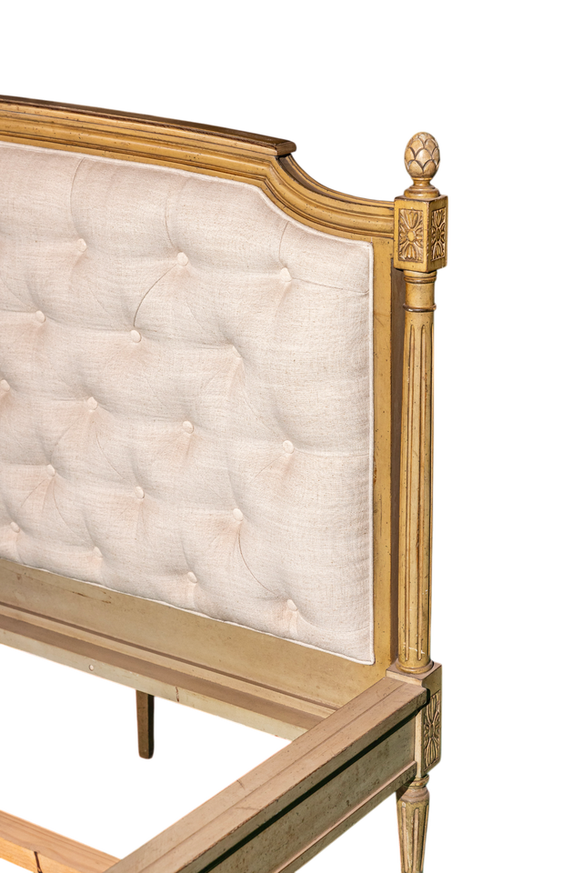 Sanare Luxury Neo-Classical Korean Bed Acacia Solid Wood with Upholstered Headboard