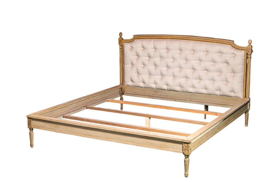 Sanare Lit de luxe de style néo-classique avec tête de lit rembourrée en bois massif d'acacia style coréen