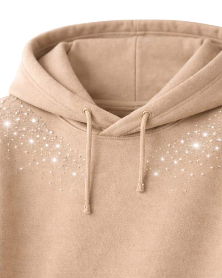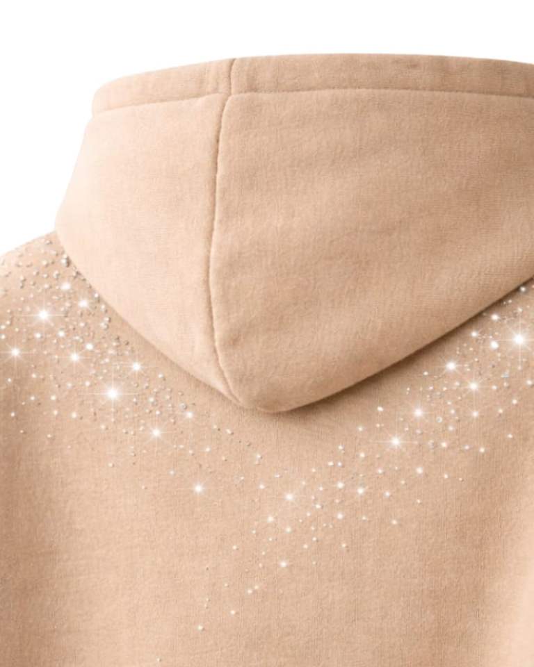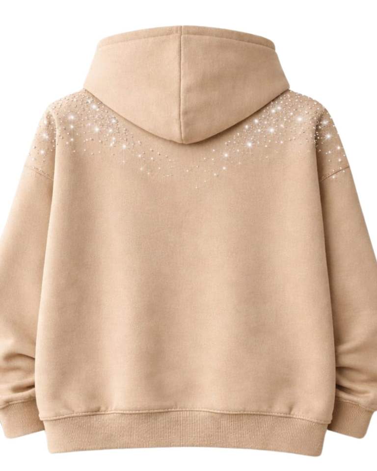 Sand Beige Rhinestone Hoodie Oversized Heavyweight Fleece Pullover Kangaroo Pocket Custom Streetwear Manufacturer Mens Hoodie