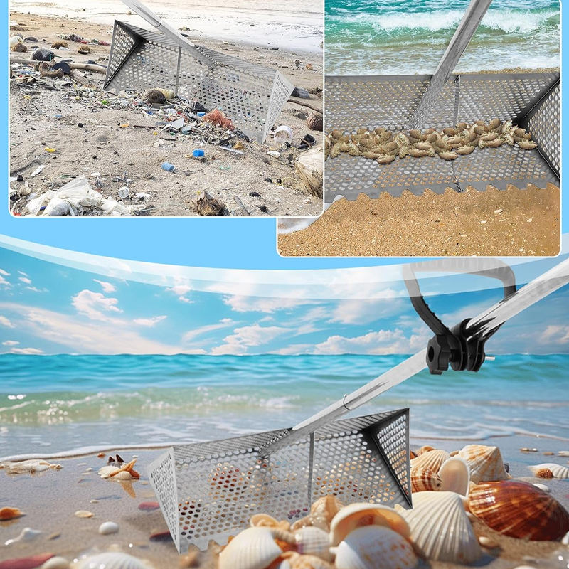 Ensemble de râteau à puces de sable en acier inoxydable tamis à sable détachable à long manche attrape-puces de sable pliable pour voyager