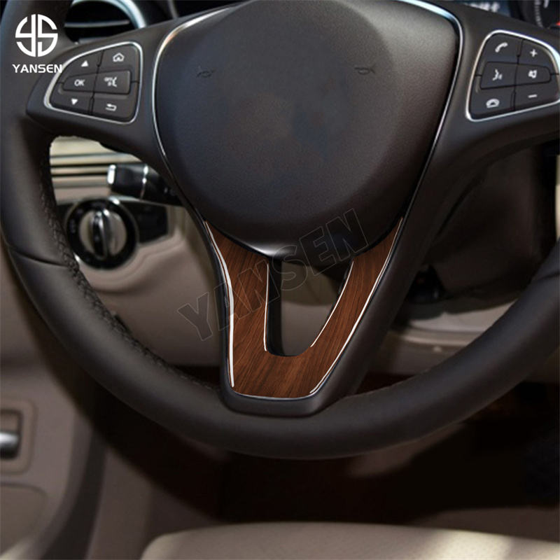 Autocollant de garniture de couverture de volant de voiture de grain de bois de sandale pour Mercedes Benz W204 W205 W211 W203 C classe E GLA GLC