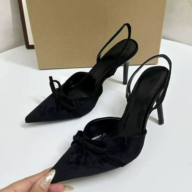 Sandales pour femmes en satin fantaisie haut de gamme, talons aiguilles, bout pointu, nœud papillon, escarpins sexy à talons hauts pour femmes