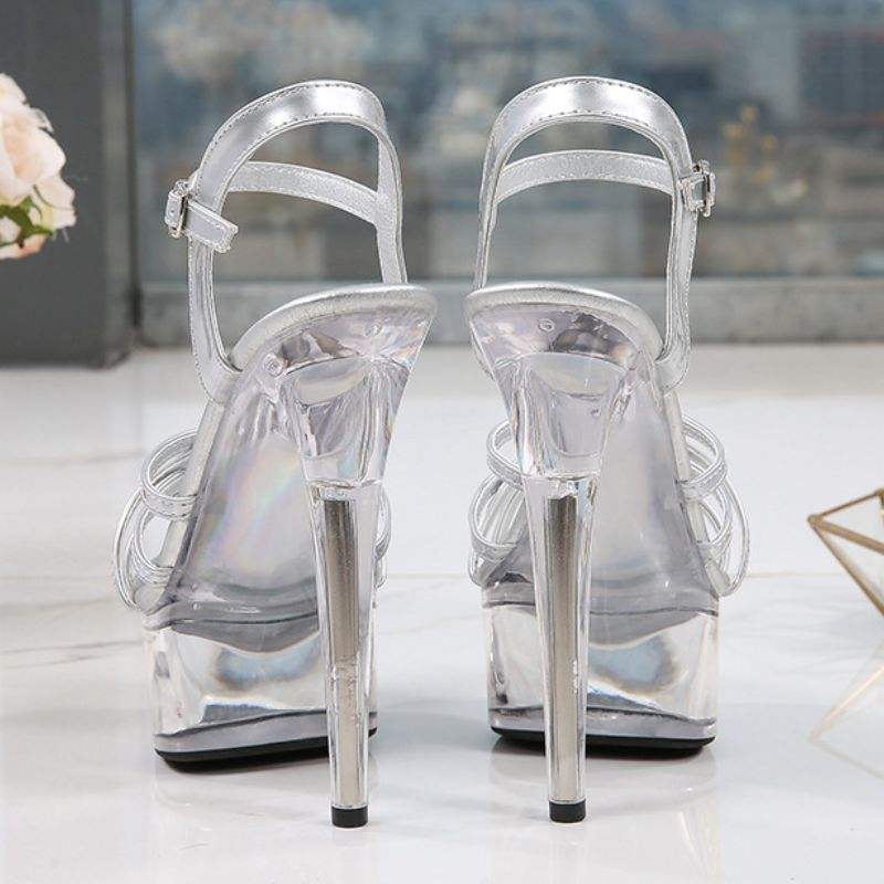Sandales à plateforme de haute qualité à bout ouvert pour femme, talons transparents pour femme élégante