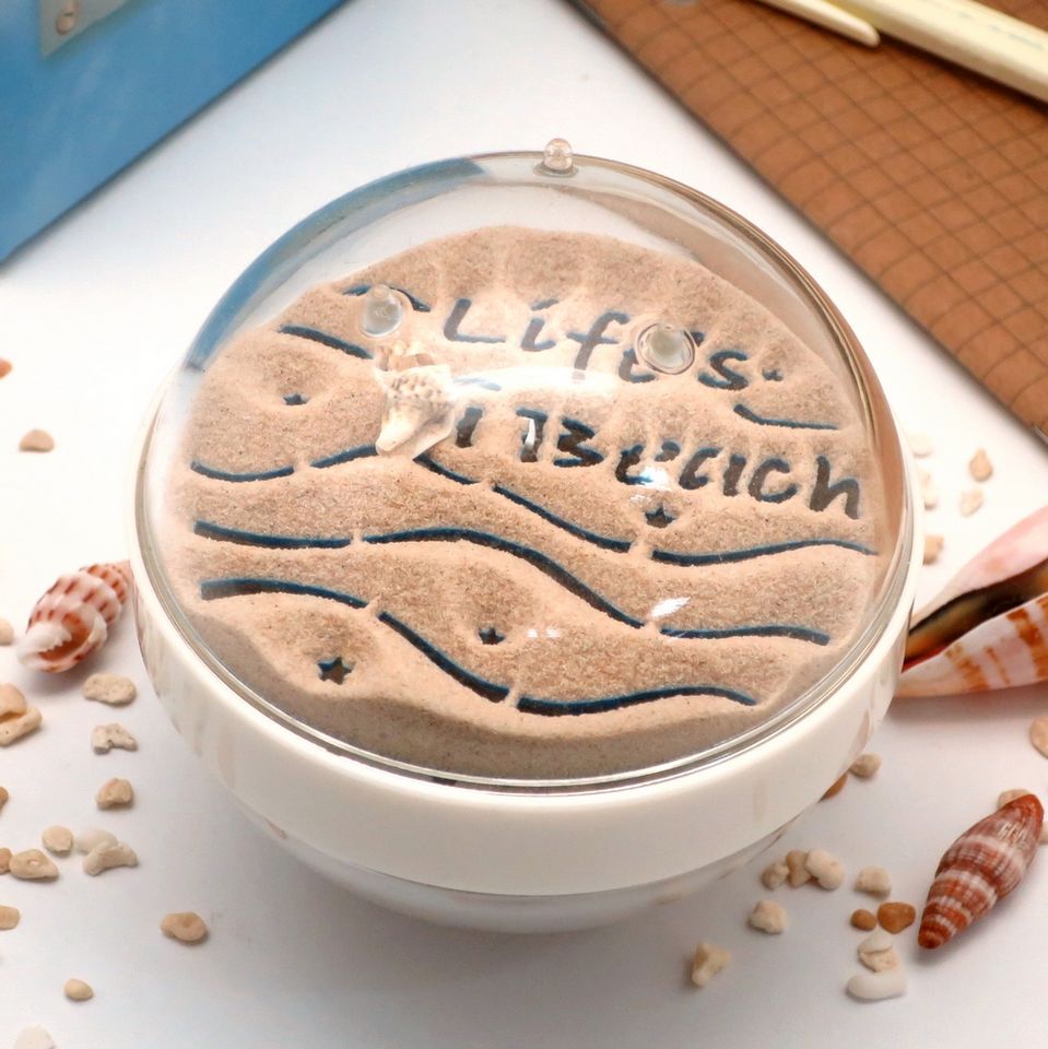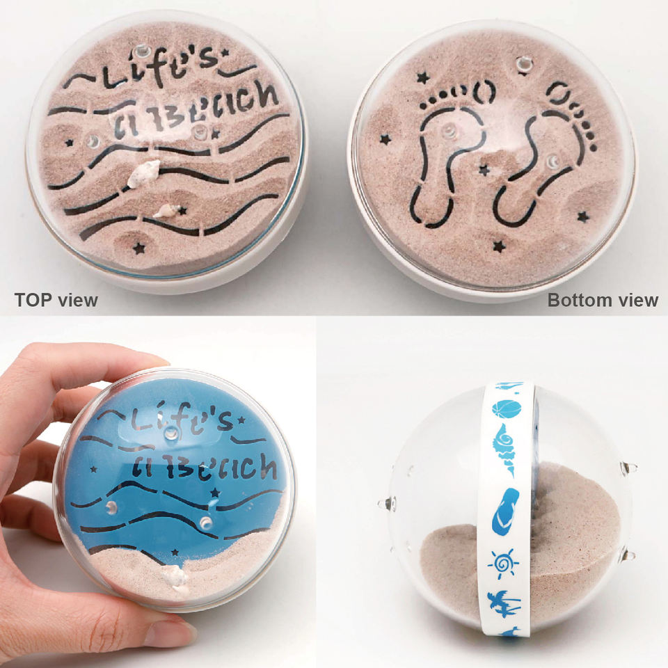 Sandglobe Paperweight 3- Inch Round, Flip Over to See Life's a Beach & Footprints Beach Sand Ocean Sea Shell Souvenir Item