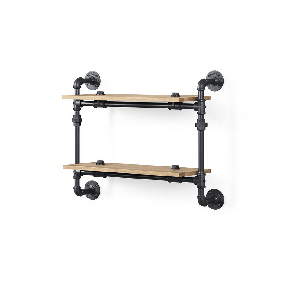 Étagère murale rectangulaire en chêne noir sable à 2 niveaux, élégante pour la maison ou le bureau