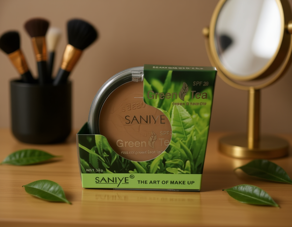 Poudre compacte au thé vert Saniye, fini mat, SPF 20, tous types de peau