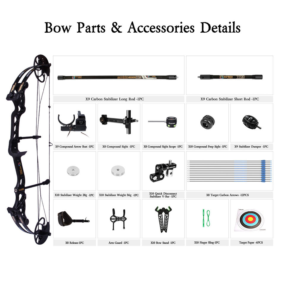 Sanlida tir à l'arc 29 "cible compacte arc à poulies et flèche Kit complet pour dames avec tous les accessoires noir 14-60lbs poids de tirage