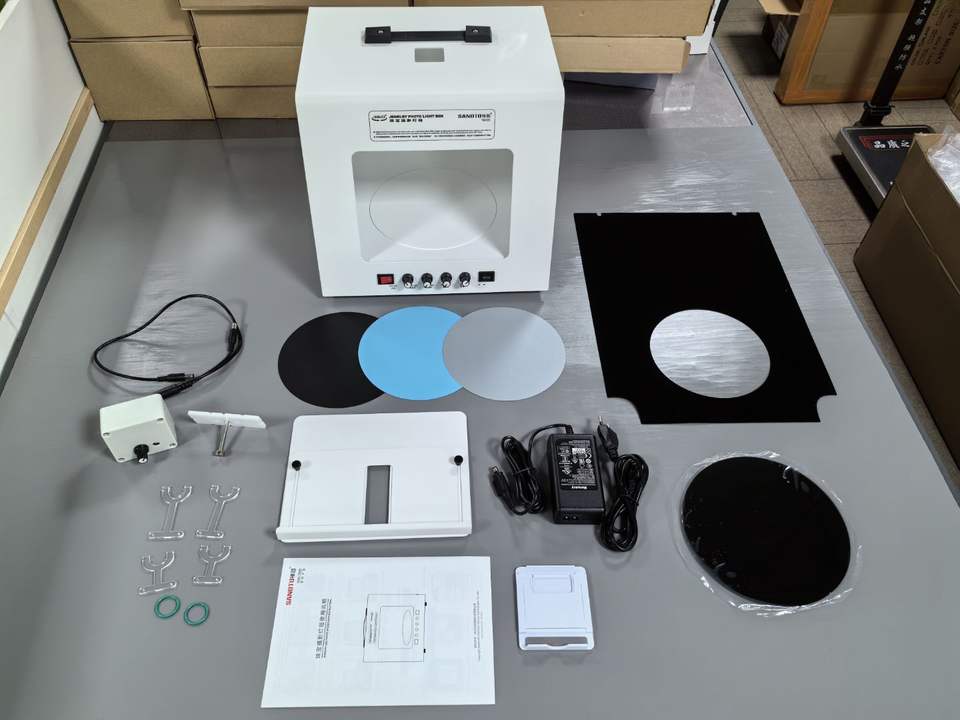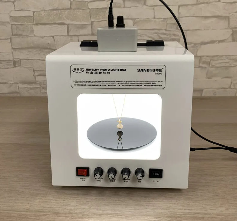 Boîte photo Sanoto 20 cm 30 cm avec support pour collier, accessoires, éclairage LED bicolore 3200K-5600K, boîte à bijoux de studio photo avec base en verre