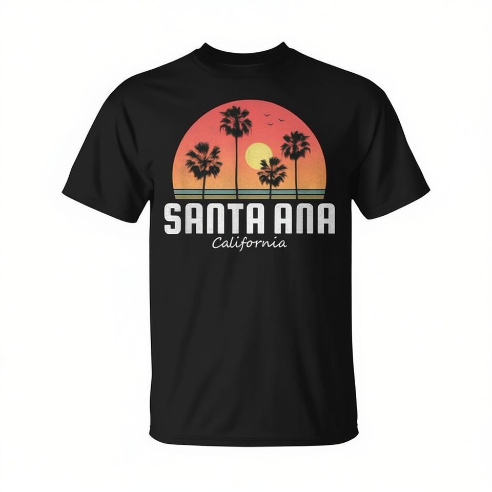 T-shirt rétro Santa Ana California Sunset unisexe à col rond et manches courtes promotionnel